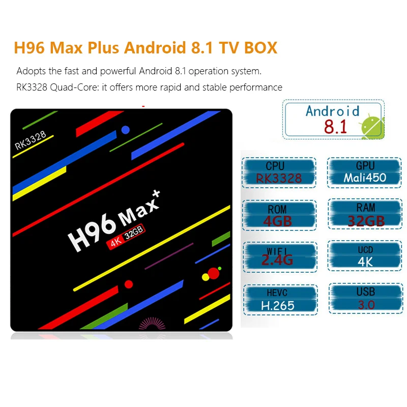 If You will buy for Box, then Android TV Box H96 Max+ RK3328 Quad Core Android 8.1 4GB/32GB H.265 HDR10 2.4G Wifi USB3.0 4K Set-top Box media player h96 pro may be make you like